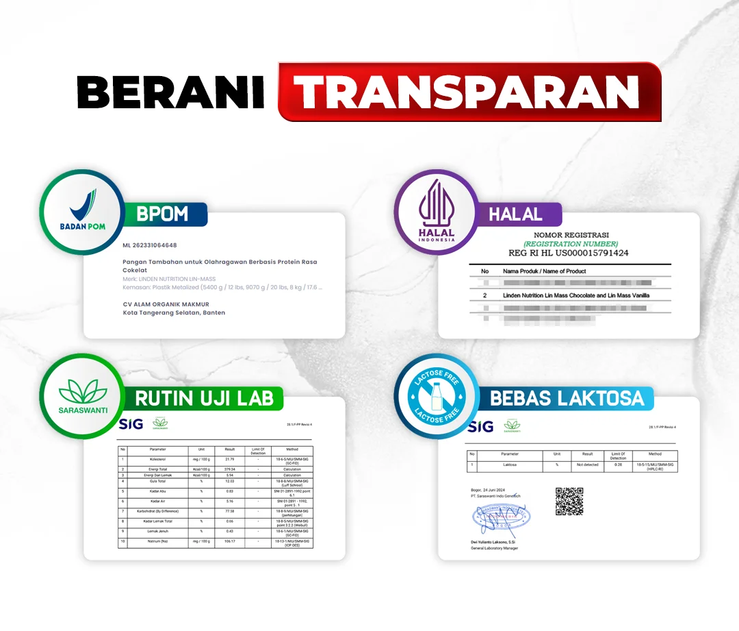 A: Lin-Mass sudah bersertifikasi Halal Indonesia dan juga BPOM. Setiap batch produksi sudah dilakukan uji lab rutin untuk menjaga kualitas produk.